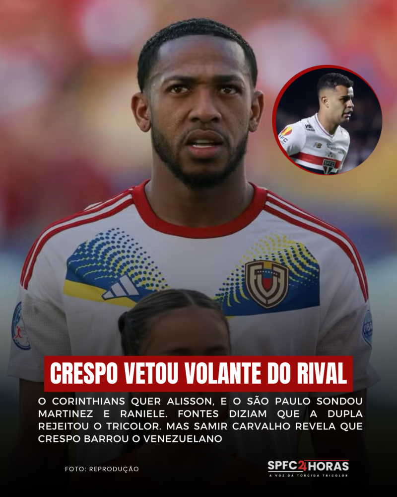 A diretoria corintiana ofereceu nomes que não agradaram o São Paulo. Casos de Hugo, Renato, Alex Santana e Hector Hernandez… Com isso, a diretoria são-paulina pediu Raniele ou Martinez, mas o nome do venezuelano foi barrado por Crespo.