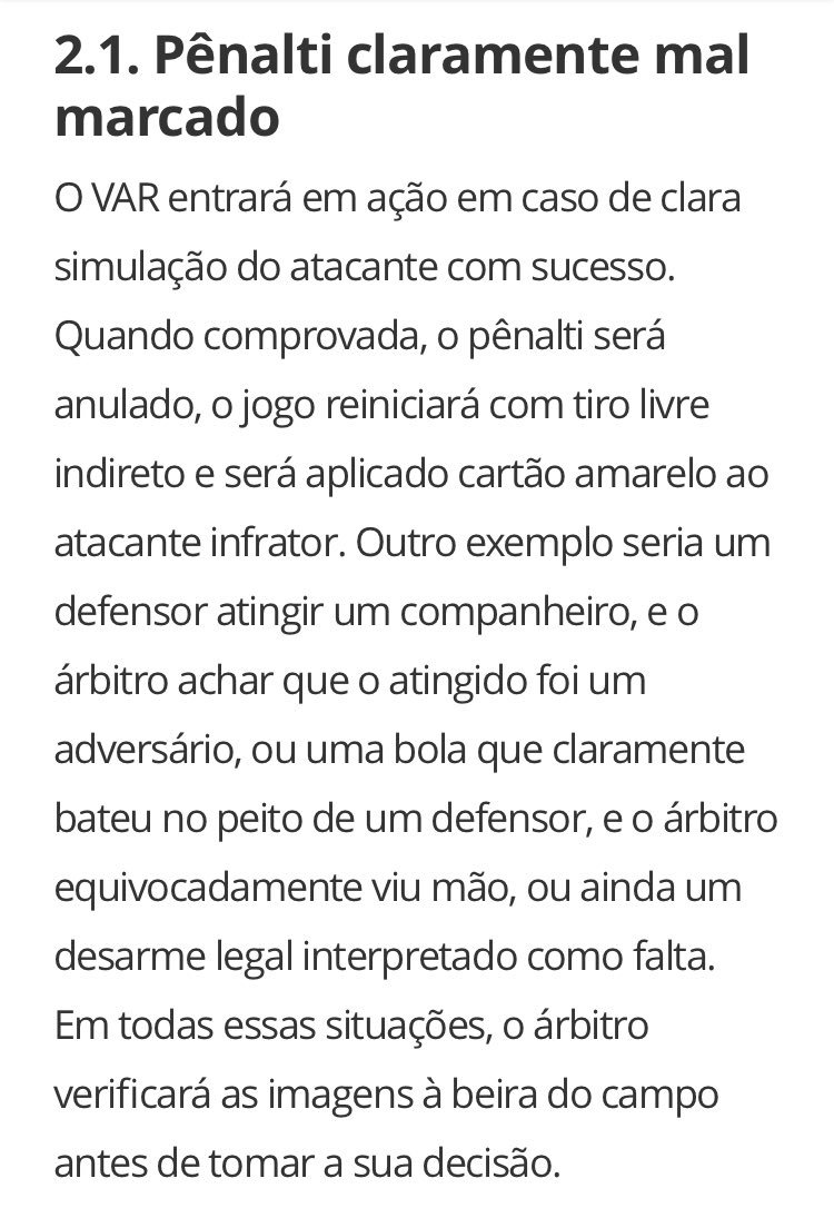 Texto da IFAB sobre a utilização ou não do VAR. Decisão original pode ser alterada caso o vídeo mostre um erro claro e óbvio. Não existe nada sobre lance ser interpretativo… pic.twitter.com/kzRToUPo2S